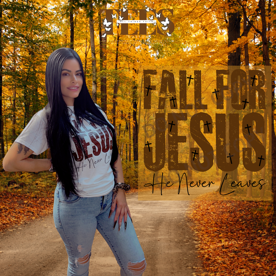 "FALL FOR JESUS He Never Leaves" T-Shirt