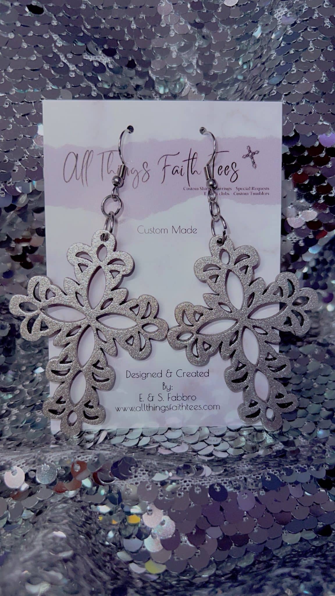 The boho cross earrings have a lightweight build. They are easy to wear all day long. The hooks fit most piercings and do not cause discomfort. All Things Faith TEES crafts these earrings with care. Every detail stands out. The finish adds shimmer and sparkle. You can match these earrings with other faith-based accessories from the store.