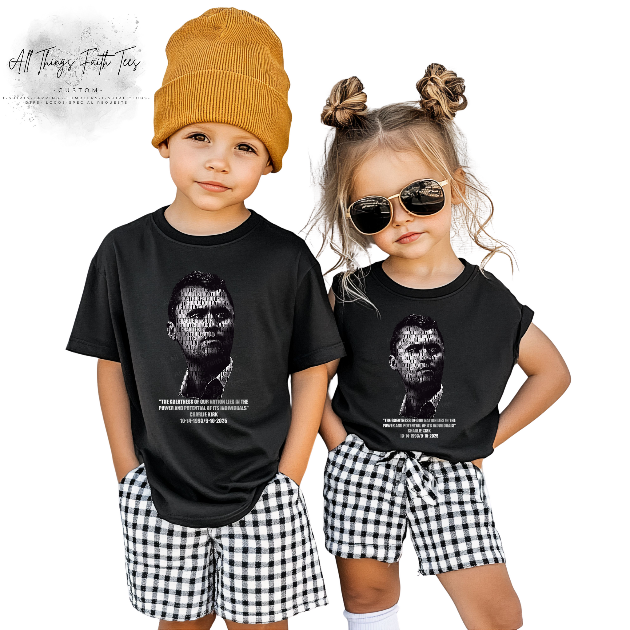 Show off your convictions with the Charlie Kirk T-Shirt — crafted for comfort, clarity, and bold statements. This unisex tee features buttery-soft, breathable fabric that keeps you feeling great all day. With vibrant direct-to-film printing that won’t fade, crack, or shrink, this shirt holds its shape and message through every wash. Available in many sizes — youth, adult, and newborn.
