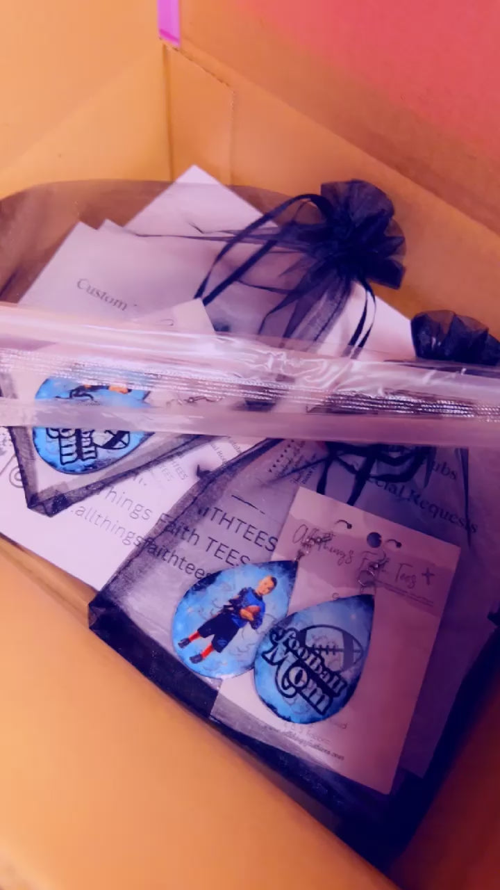 Keep your memories close with our Custom Photo Sublimation Earrings 💕. Handcrafted with love in Rio Rancho, NM, these one-of-a-kind earrings allow you to showcase your favorite photos—whether it’s a loved one, a special moment, or even your beloved pet. Each pair is made with lightweight materials for all-day comfort and a glossy finish that makes your image pop. Perfect for gifts, memorial keepsakes, or everyday wear that tells your story. ✨