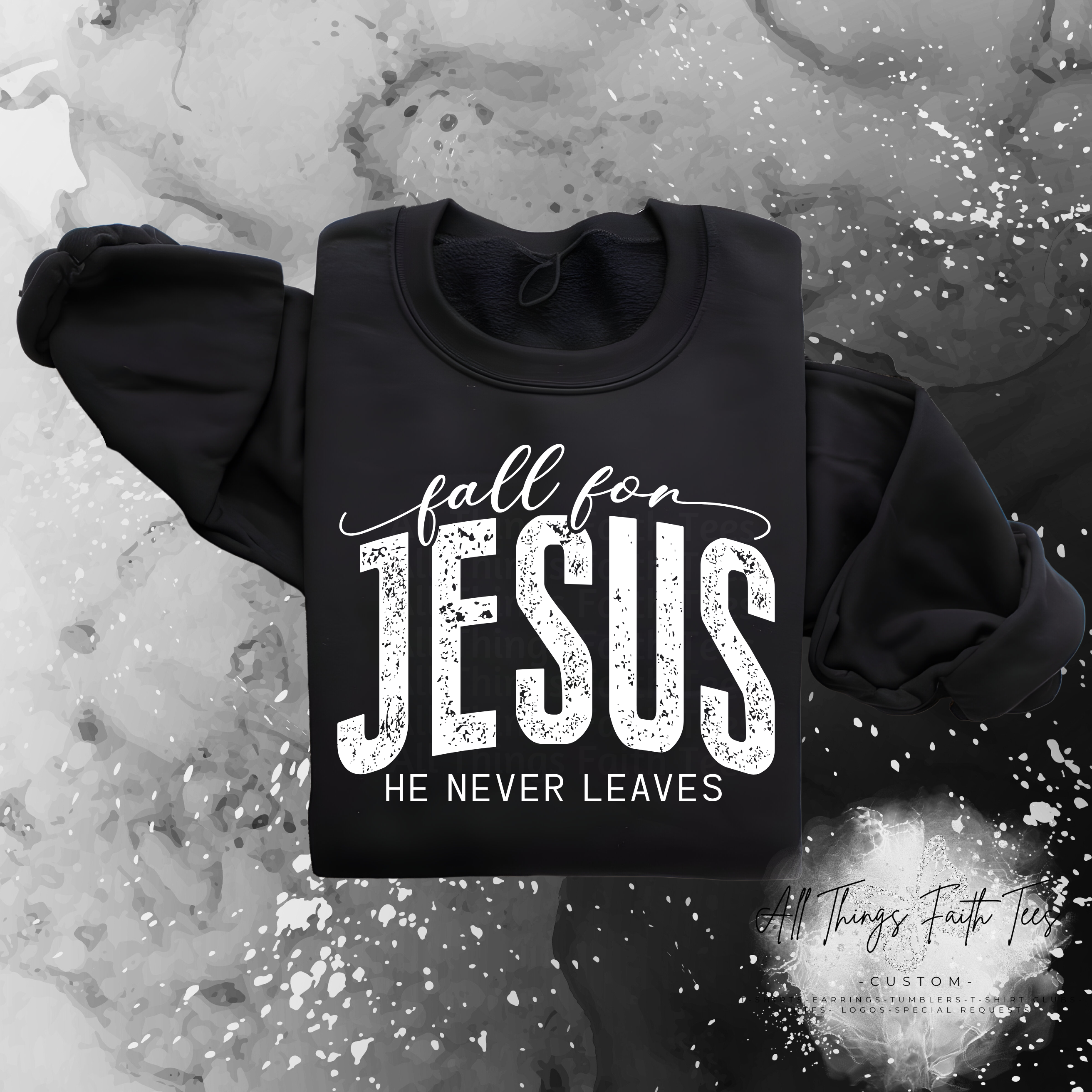 Cozy up in faith this season with our “Fall For Jesus – He Never Leaves” Sweatshirt 🍁