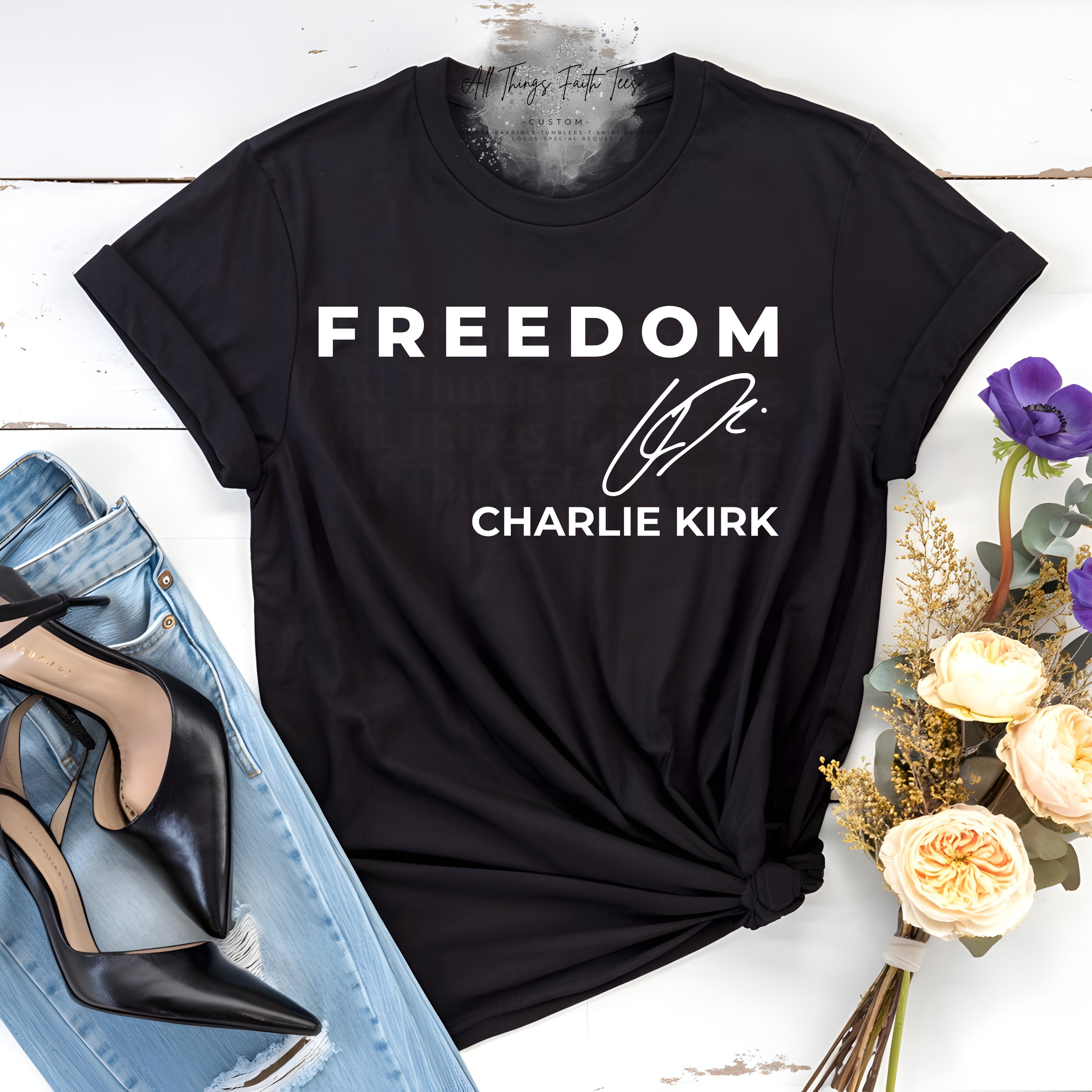 Mark the moment with our "FREEDOM W/ Signature" T-Shirt More than just apparel, this tee symbolizes courage, faith, and the choice to step into something new. Crafted from soft, breathable cotton with a classic unisex fit, it’s made for everyday comfort while carrying a powerful message.