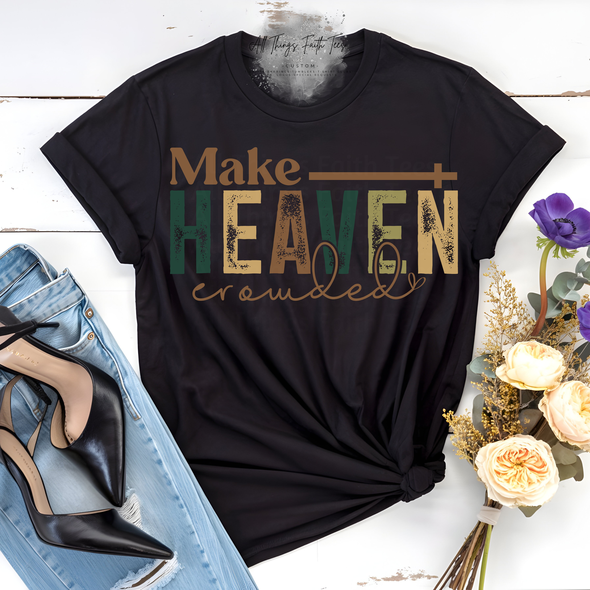 Spread the message of faith and love with our “Make Heaven Crowded” T-Shirt. ✝️ This bold and inspiring tee is more than just apparel—it’s a conversation starter and a reminder of our mission to share the Gospel. Made from soft, breathable cotton with a unisex fit, it’s perfect for church events, outreach, or everyday wear. Comfortable, stylish, and rooted in purpose—wear it as a testimony and inspire others to join the Kingdom.