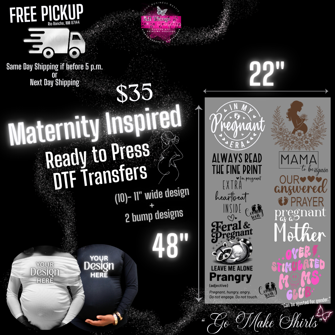 Create beautiful, trendy maternity shirts in minutes with this Maternity Inspired Ready-to-Press DTF Gang Sheet 💕